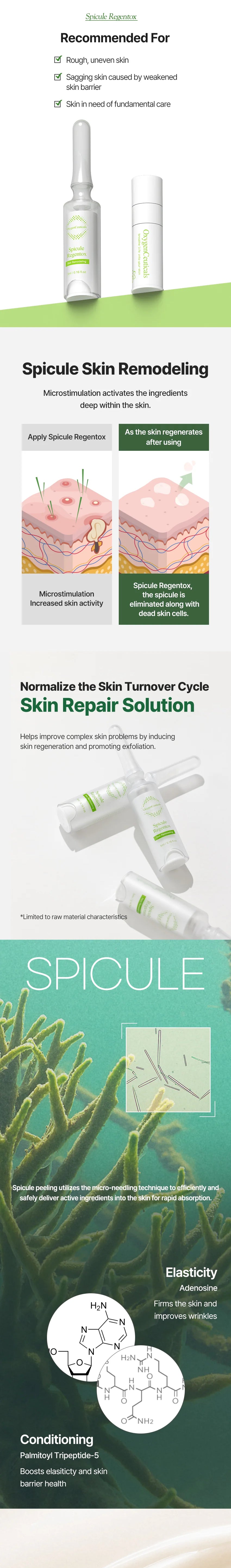 A skin restructuring ampoule with microneedle-like spicules extracted from marine sponges.
