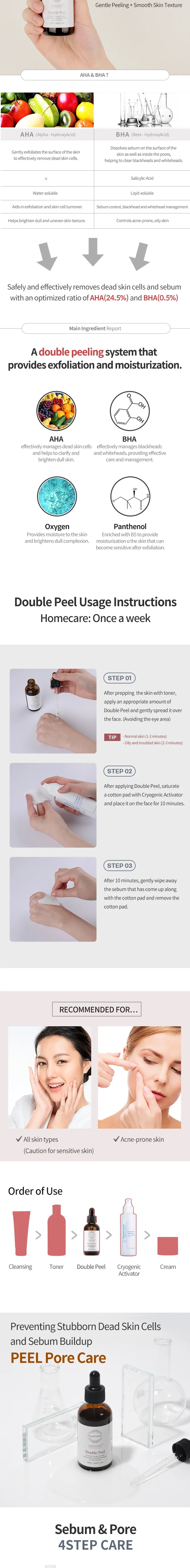 Optimum proportion of AHA & BHA, nullifes acne skin, dissolves clogged sebum in pores and assists with removal of dead skin cells.