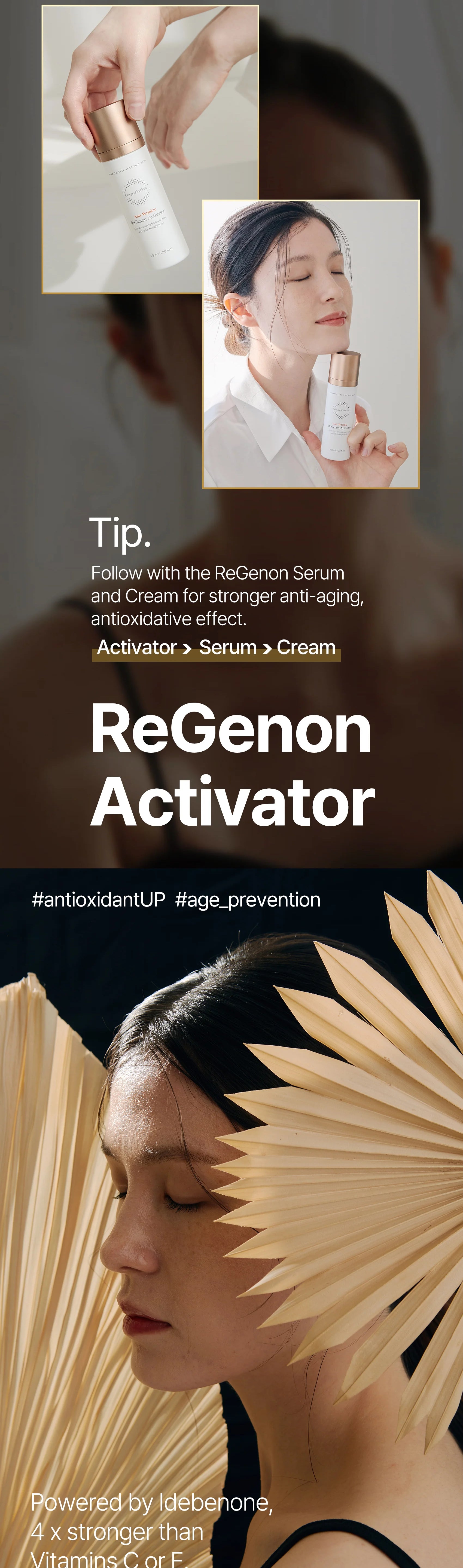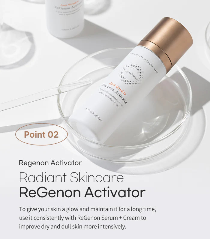 🍃 With the power of Idebenone and Camellia Flower Water, the ReGenon Activator provides powerful antioxidative effects to boost brightness and prevent premature signs of aging such as lines and wrinkles.