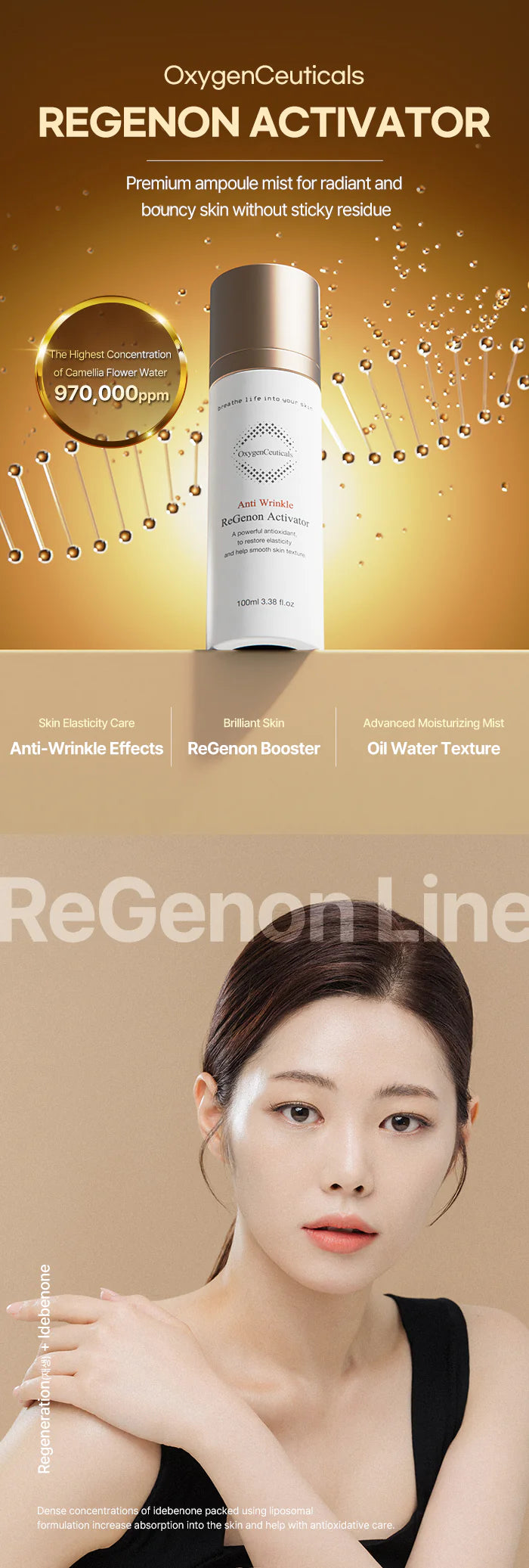 Premium anti-aging ampoule mist formulated with Camellia Flower Water.