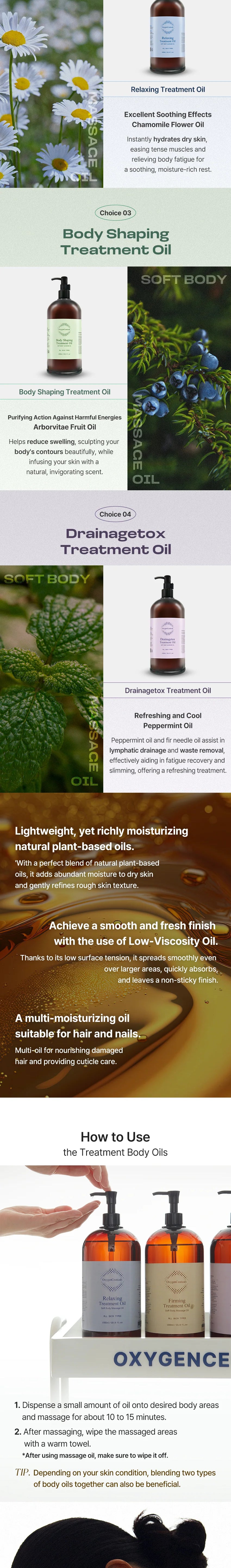 Rich massage oil designed to firm skin and relax muscles.